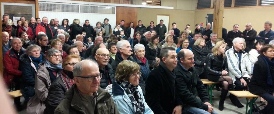 De même que l'an passé la cérémonie a débuté par une minute de silence. Jean Jourden a rappelé les mots qu'il avait prononcés, il y a un an : Il y a un an , le samedi 10 janvier 2015, voici les mots que je vous adressais : « En écho aux événements tragiques qui viennent de se produire et qui nous concernent tous, nous allons observer une minute de silence en mémoire des victimes des assassinats terroristes qui viennent de se produire sur notre sol frappant ainsi l'un des fondements de notre société, la liberté d'expression ». Je crois qu'il va falloir nous habituer à ce genre de situation qui malheureusement est amenée à se reproduire. A nouveau j'aimerais que nous observions une minute de silence en mémoire des victimes des attentats du 13 novembre à Paris et de leurs familles. Ces vœux sont l'occasion de témoigner notre solidarité envers les personnes de notre commune qui souffrent de maladie ou de solitude, ceux qui affrontent des moments douloureux, des deuils. Nous avons une pensée pour ceux qui nous ont quittés : Henri Le Borgne, notre doyen le 13 mars - Yvonne Briand - Maria Lepvrier le 17 mai - François Thoraval le 25 mai - Loïc Petibon le 16 septembre - Marcel Moisan le 18 septembre - André Beffrey le 19 octobre. Jean Jourden s'est félicité des 5 naissances enregistrées dans la commune et des 4 mariages qu'il a célébrés. Puis il a fait état des principales réalisations en 2015. La mise en place du R.P.I (Regroupement Pédagoqique Intercommunal) avec la commune de Saint-Adrien : Saint-Péver accueille une quarantaine d'élèves dans les classes de CE et CM. Saint-Adrien accueille à peu près le même nombre d'écoliers dans les classes de maternelle et de CP. Le transport est géré et pris en charge à hauteur de 80% par le Conseil Général comme tout transport scolaire - reste à la charge des communes 115,00 euros par an et par enfant. Chaque école garde sa cantine. Une garderie est ouverte à partir de 7h30 le matin et jusqu'à 18h30, le soir, dans les deux écoles. Jusque là tout se passe bien. L'effacement des réseaux électriques et téléphoniques aériens du bourg et d'Avaugour pour un coût total de 180.000,00 euros HT dont 83.000,00 euros à la charge de la commune. Dernier point, la réforme territoriale : Tout le monde a vu dans la presse l'article « Saint-Péver mariée avant la fin de l'année ? » Je serai peut-être le dernier maire de Saint-Péver ! Dans le cadre de la réforme territoriale, les communes vont être amenées à se regrouper au sein de « communes nouvelles » et les communautés de communes devront fusionner pour former des « communautés de communautés » ! La question pour l'instant est de savoir avec qui le Leff communauté, auquel nous appartenons, va fusionner. Nous, nous aimerions que se crée un grand pôle autour du bassin de Guingamp. Le sujet sera à l'ordre du jour dans les mois à venir et la population sera consultée le moment venu. Pour conclure, le maire s'est adressé aux présidents d'associations : Je tiens, une fois de plus, à remercier les présidents d'associations oh combien importantes dans une commune; sans elles, les communes n'auraient pas autant de dynamisme; un grand merci également aux employés de l'école Jeannie, Danielle et Muriel pour le travail accompli dans leurs tâches respectives, à Lionel sur qui on peut toujours compter et à Nicolas, notre secrétaire de mairie. Je terminerai en vous présentant au nom de toute l'équipe municipale et en mon nom, les vœux les plus sincères de bonne santé, d'épanouissement personnel, pour vous-même, vos familles, vos proches. J'y ajoute mes vœux de réussite dans vos activités et vos projets. |
