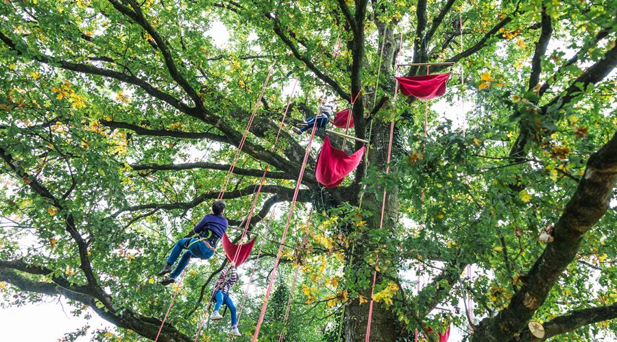| Les démonstrations de bûcheronnage sportif, présentées par les Beurre salé de Lopérec, dans le Finistère, séduisent petits et grands. |