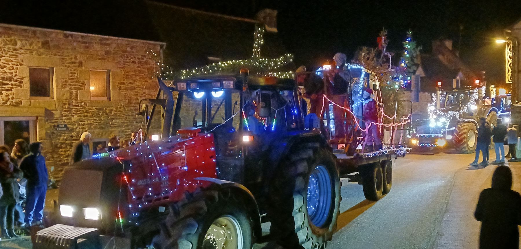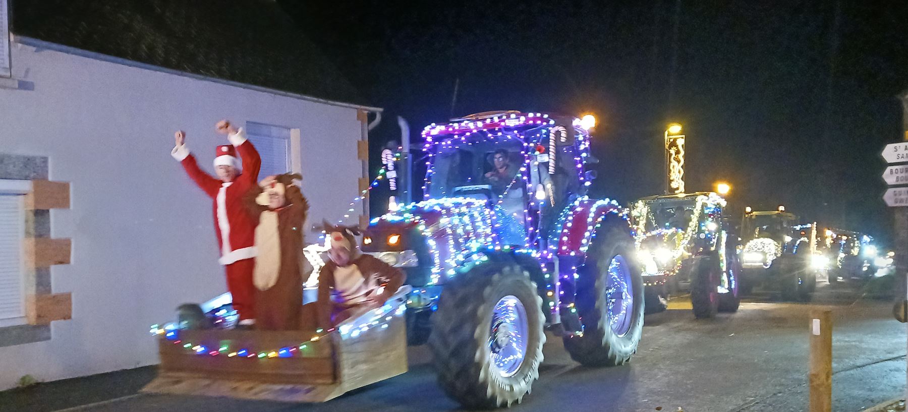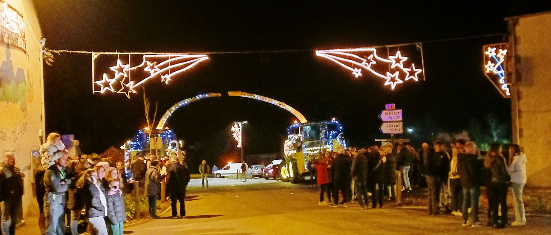 | Yann Loyer, président de l'association DSL (Dynamique de Senven-Léhart) et toute son équipe nous ont offert un spectacle époustouflant ! 150 spectateurs attendaient le convoi - près de 50 véhicules - au bourg de Saint-Péver. Partis de Senven vers 19h00, ils sont passés par Plésidy puis Saint-Adrien avant de rejoindre Saint-Péver pour un halte à la salle socio-culturelle ... Ils sont ensuite partis pour Saint-Fiacre puis Saint-Gildas avant de revenir sur Senven - une boucle de 35 kms.