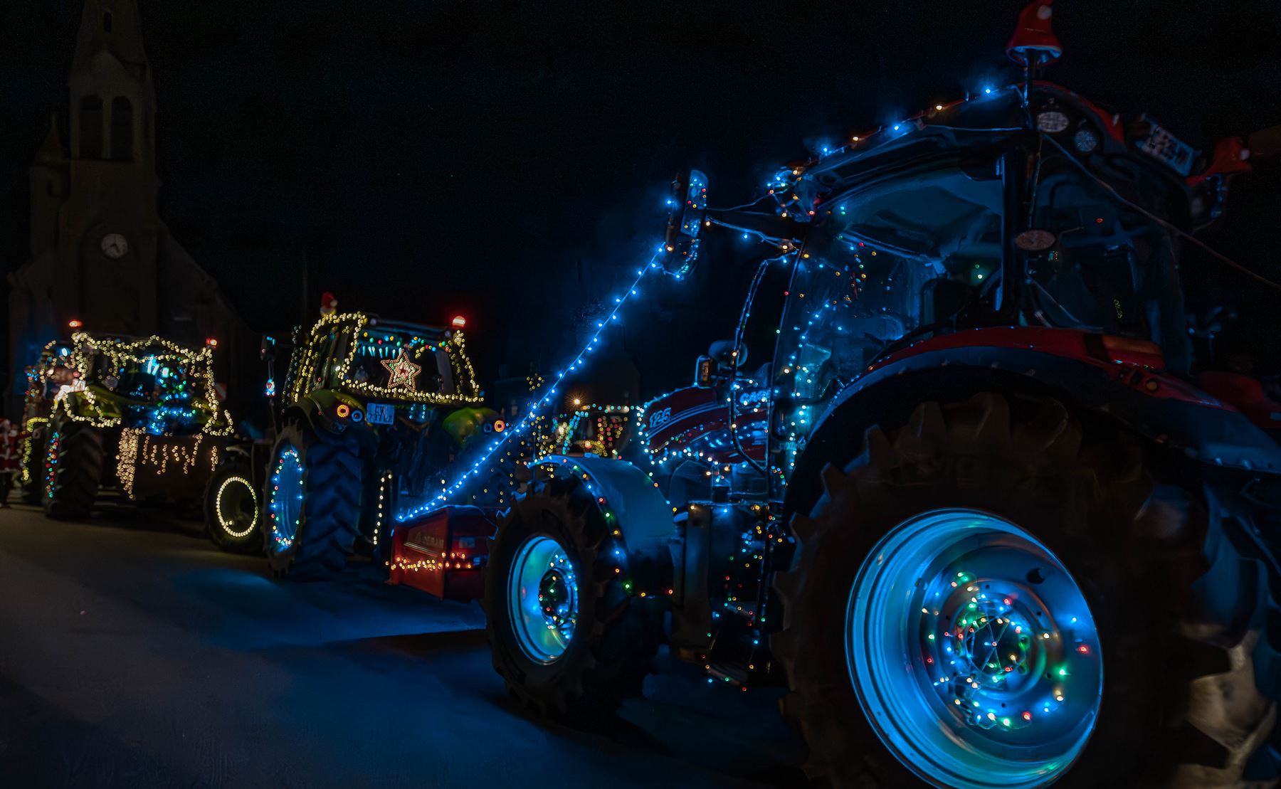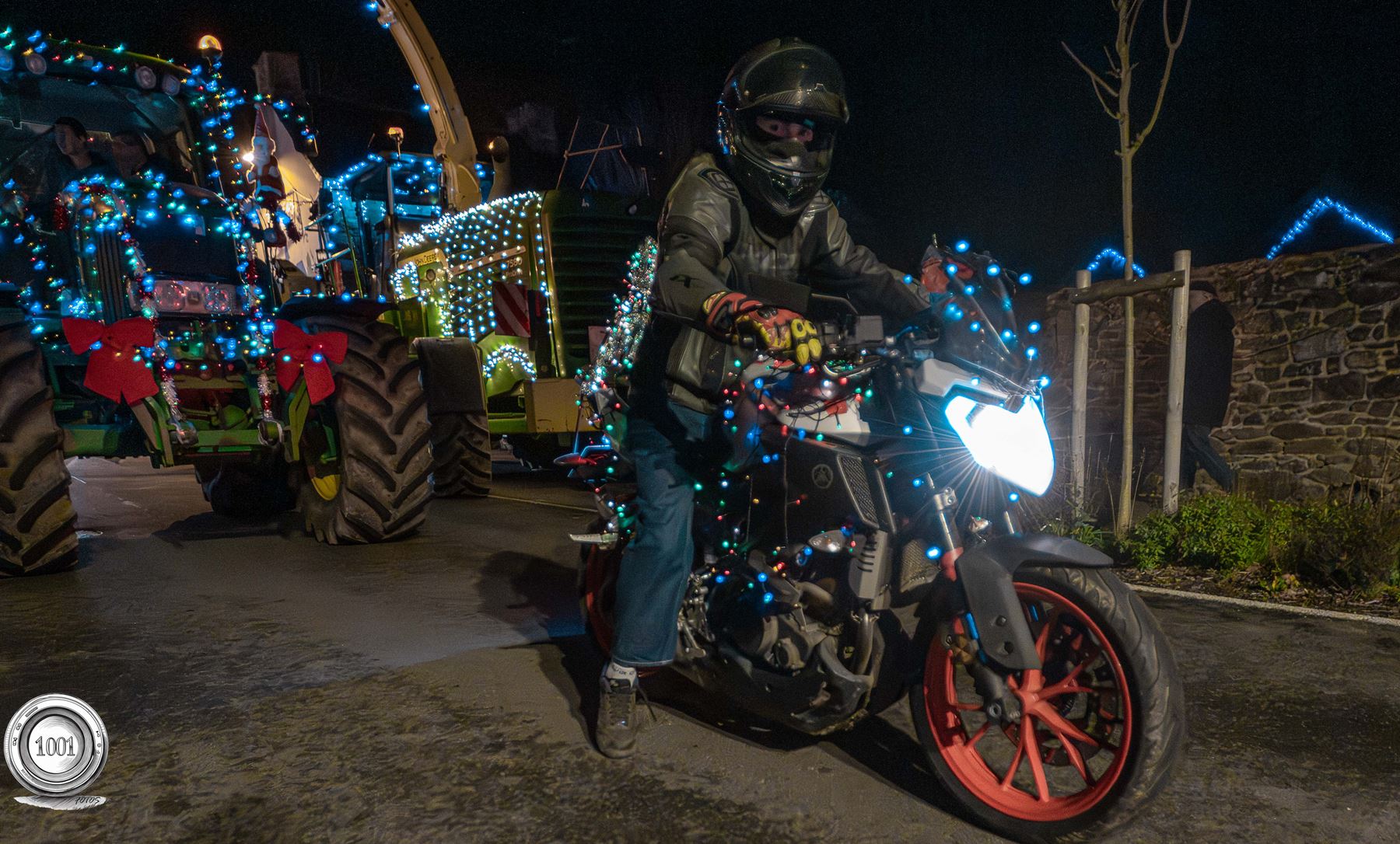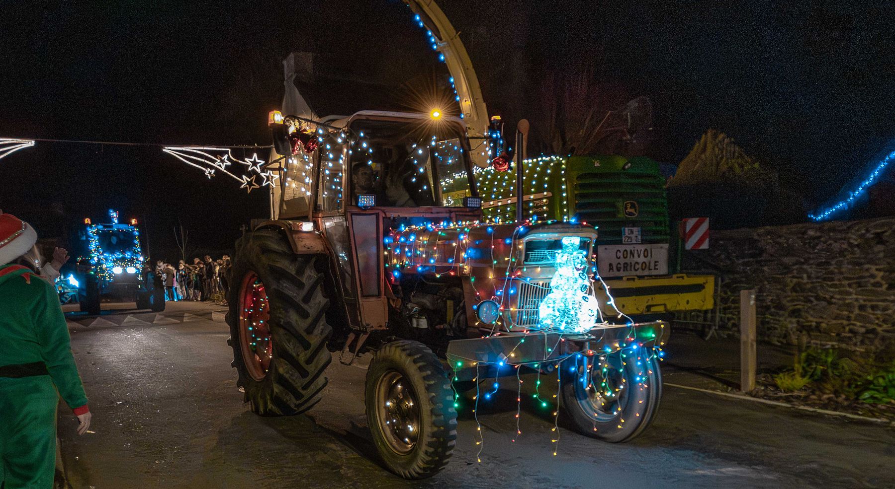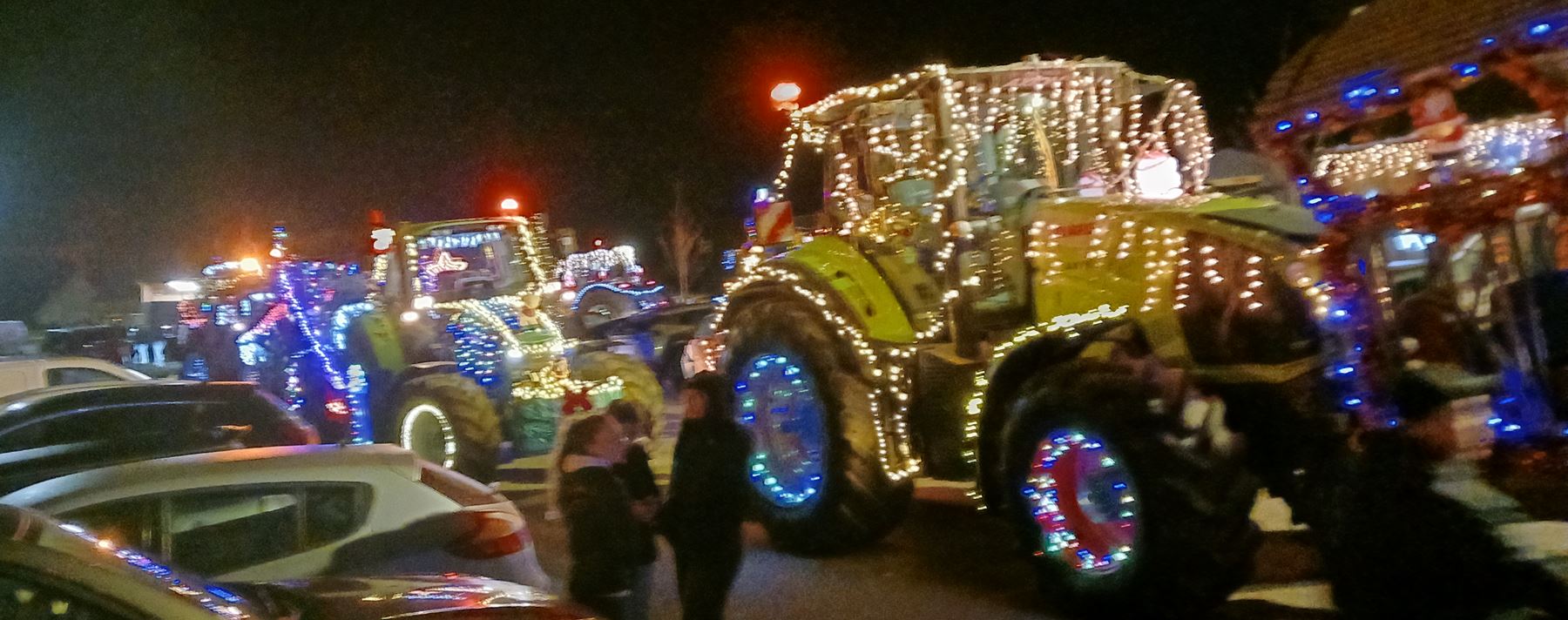 | Yann Loyer, président de l'association DSL (Dynamique de Senven-Léhart) et toute son équipe nous ont offert un spectacle époustouflant ! 150 spectateurs attendaient le convoi - près de 50 véhicules - au bourg de Saint-Péver. Partis de Senven vers 19h00, ils sont passés par Plésidy puis Saint-Adrien avant de rejoindre Saint-Péver pour un halte à la salle socio-culturelle ... Ils sont ensuite partis pour Saint-Fiacre puis Saint-Gildas avant de revenir sur Senven - une boucle de 35 kms.