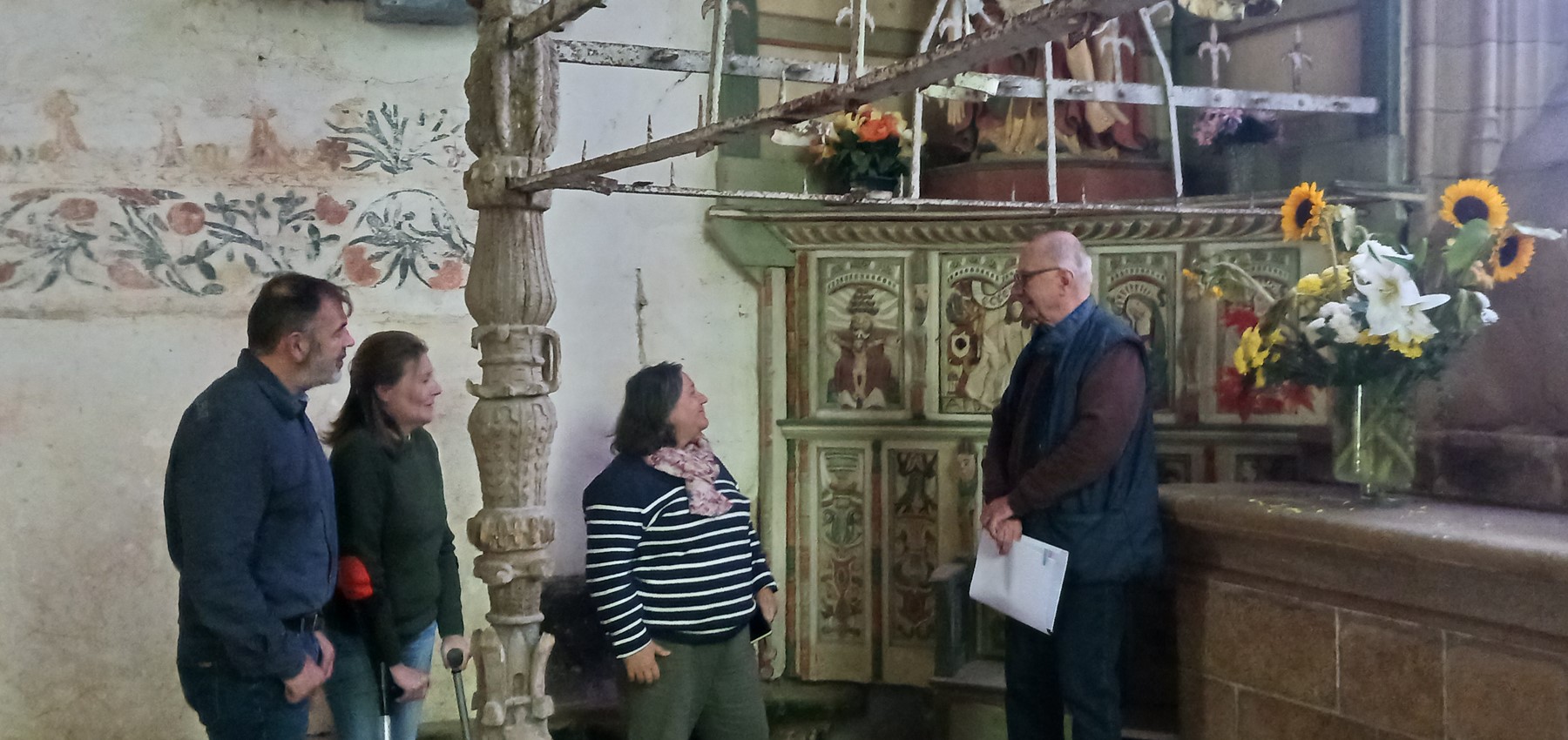 « A l'occasion des Journées du Patrimoine, les chapelles de Restudo et d'Avaugour, monuments historiques propriétés de la commune, ont reçu une trentaine de visiteurs particulièrement intéressés. A Restudo, Anne-Marie a présenté l'histoire du culte de Saint-Eloi (alias Saint-Alor) en Bretagne et à Avaugour (Avalgor en Breton), Philipe a présenté l'histoire des comtes de Penthièvre et du duché de Bretagne, la plus longue période de notre histoire. A Avaugour, les visiteurs ont aussi pu admirer l'un des plus beaux sacraires (armoire de sacristie) de Bretagne. Ce sacraire figure en couverture d'un livre de Bertrand Monvoisin sur le sujet. Les deux chapelles sont régulièrement visitées toute l'année sur RV (téléphoner en mairie) » (Philippe) |