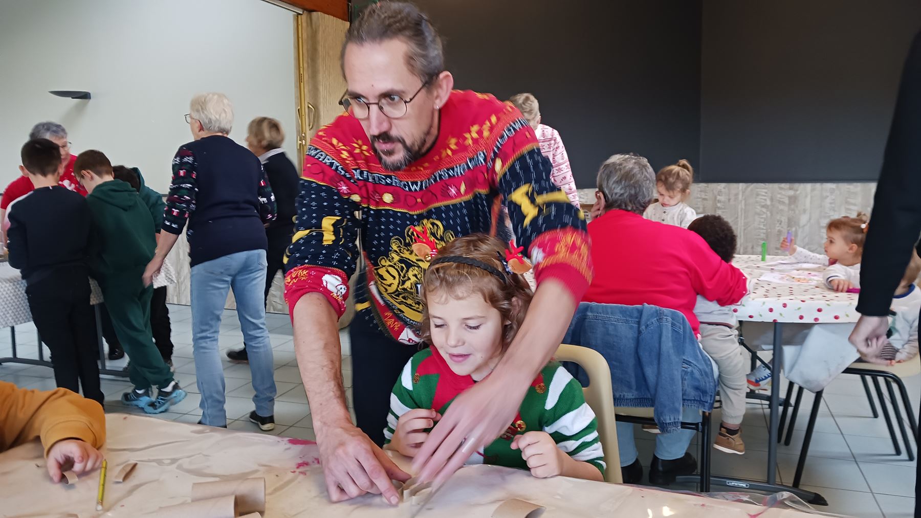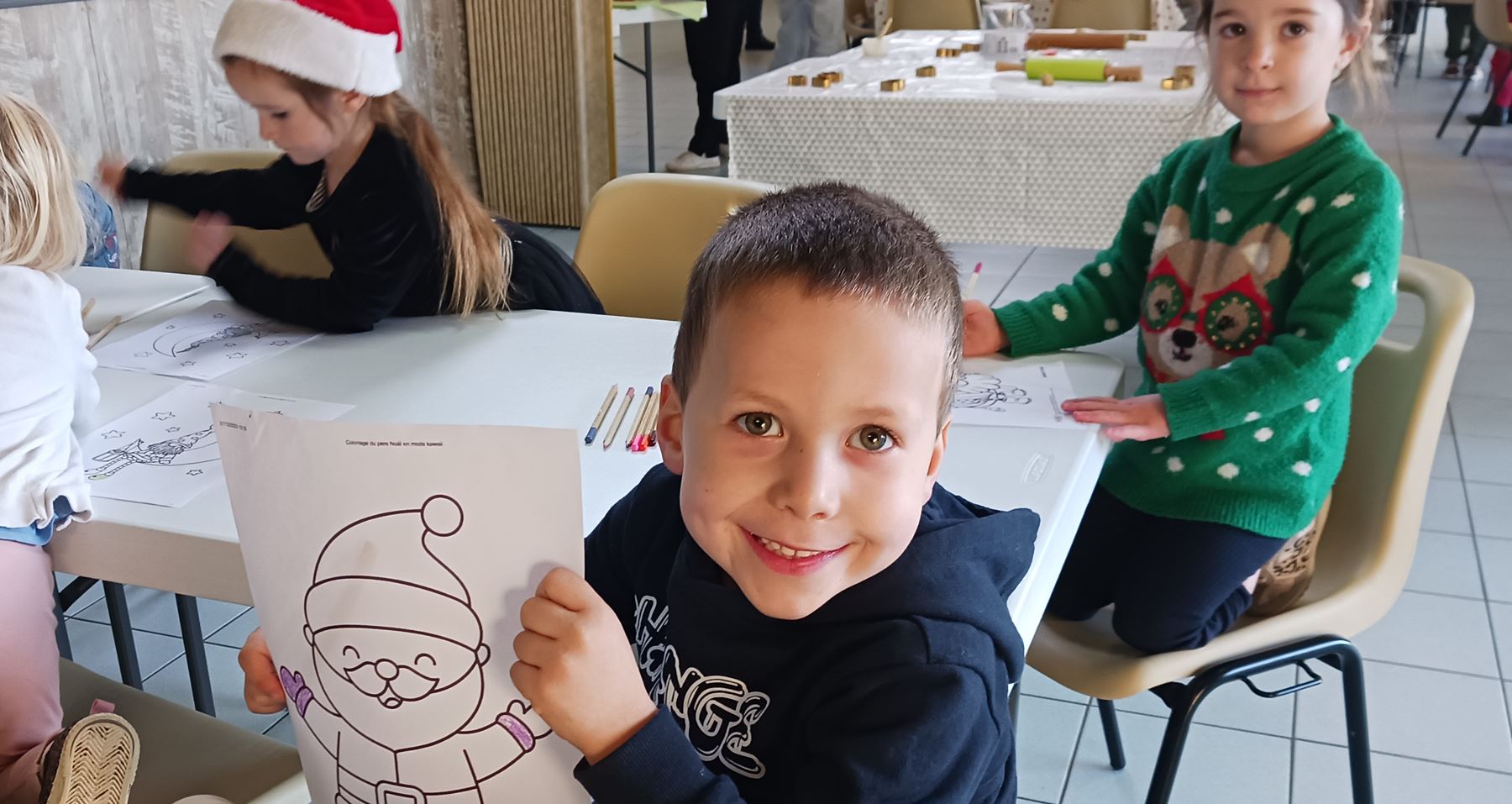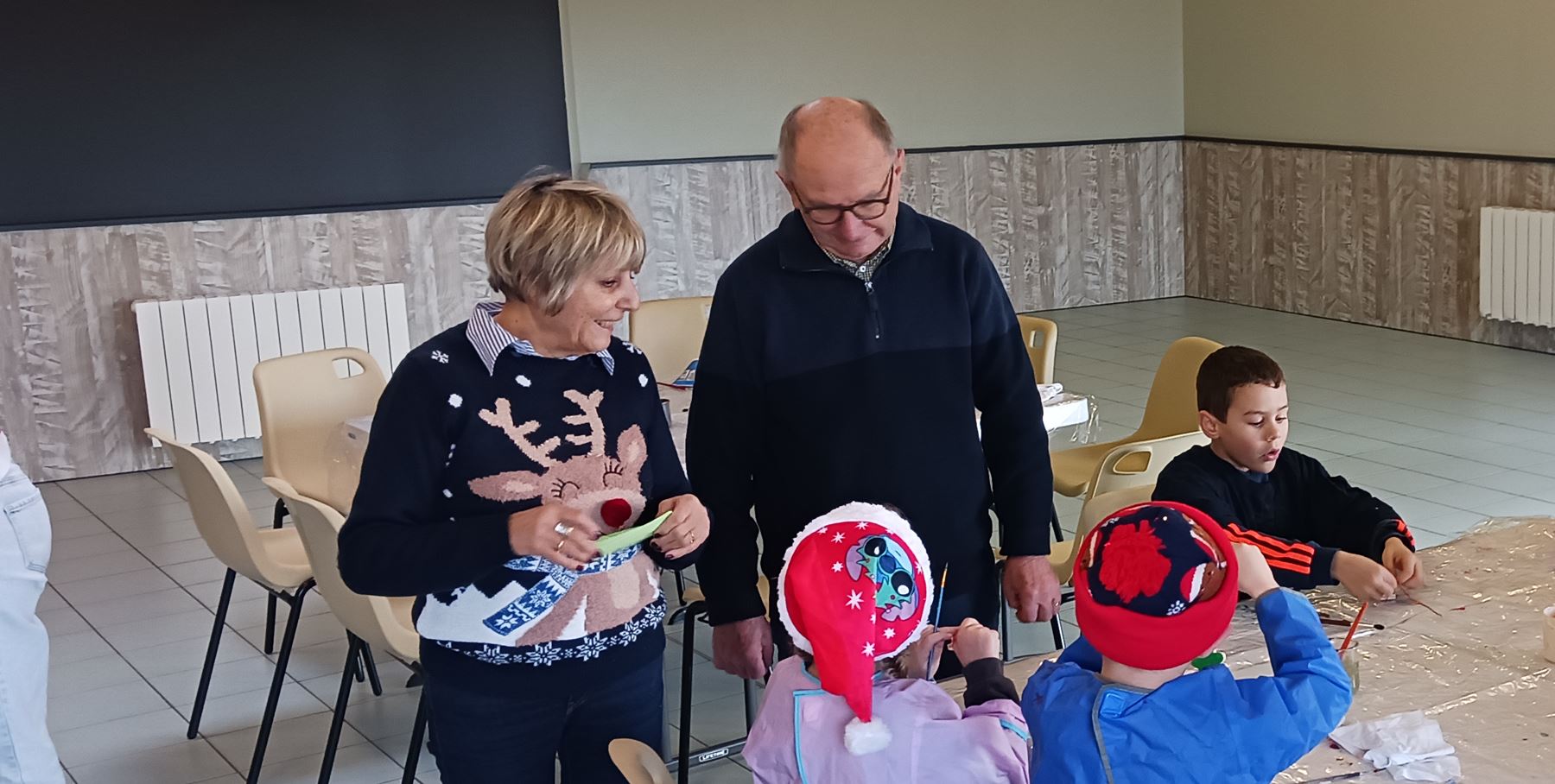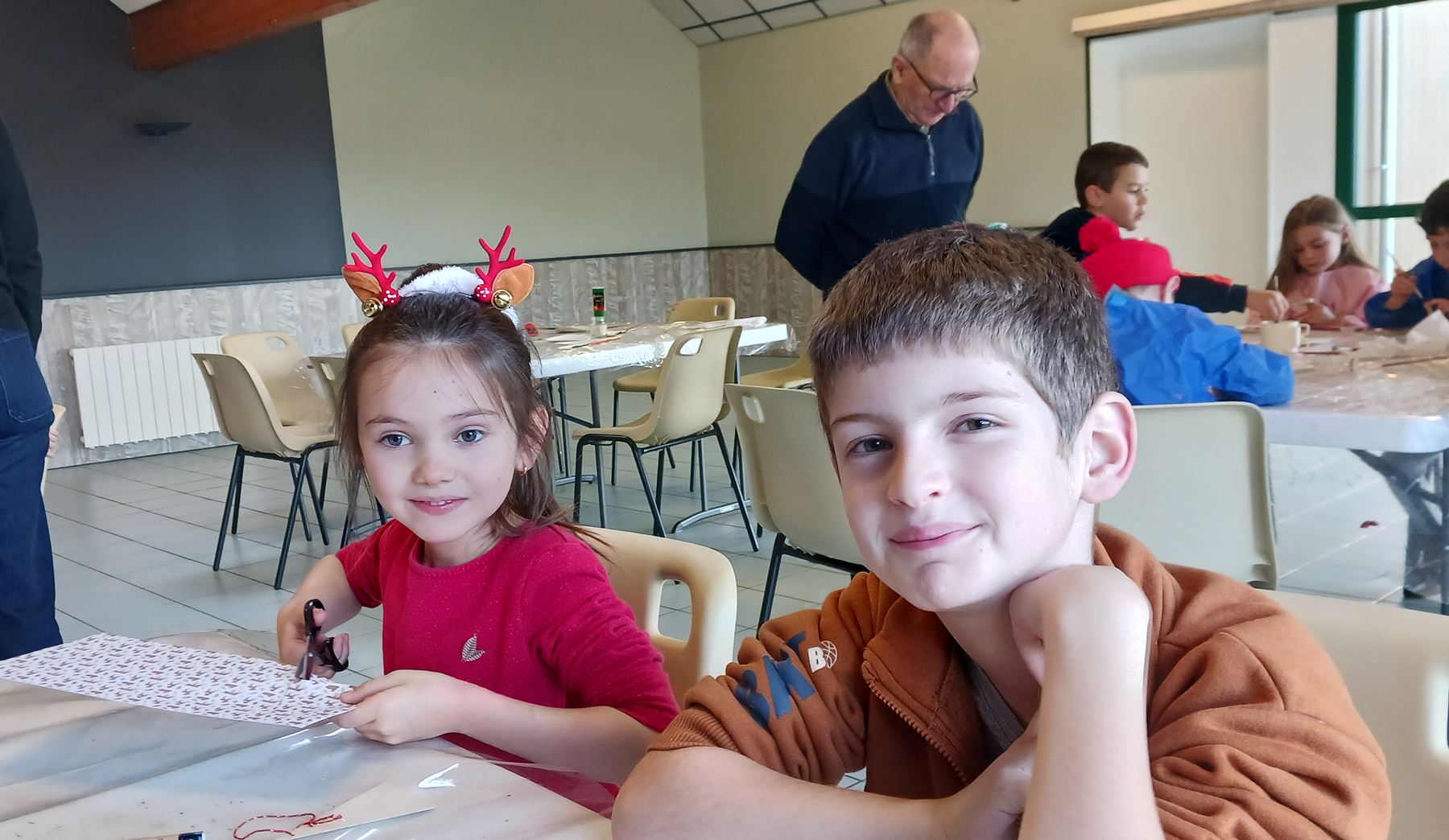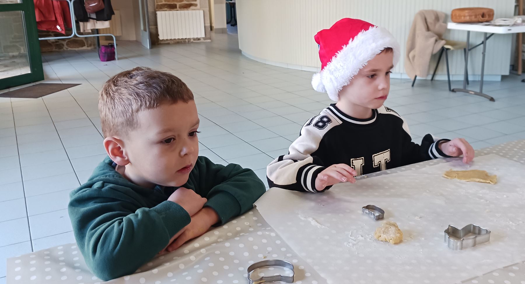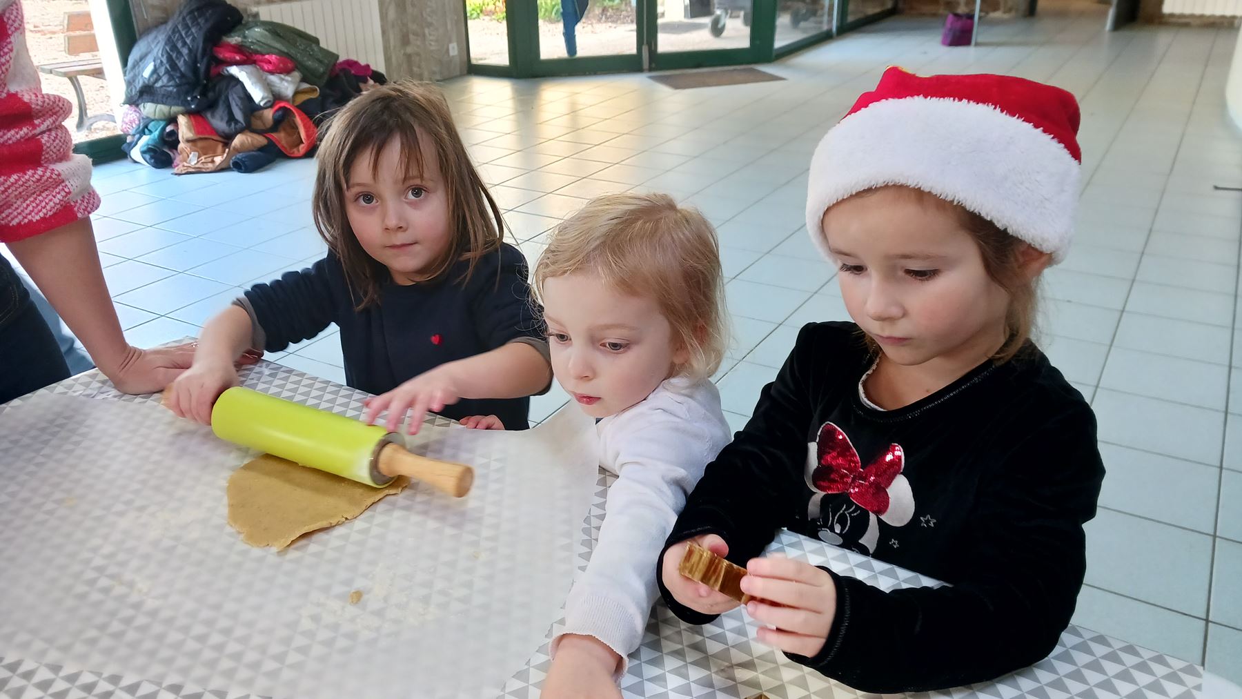 Rendez-vous pour les enfants de l'école à la salle polyvalente ce matin là, à 10h30 pour des ateliers cuisine, peinture, découpage ... Mme BAHEZRE propose des ateliers gâteaux et bricolage .... Mme ZAUGG prépare des boules en tissus avec le prénom de chaque enfant brodé. Quelques adultes sont venus apporter leur soutien. |