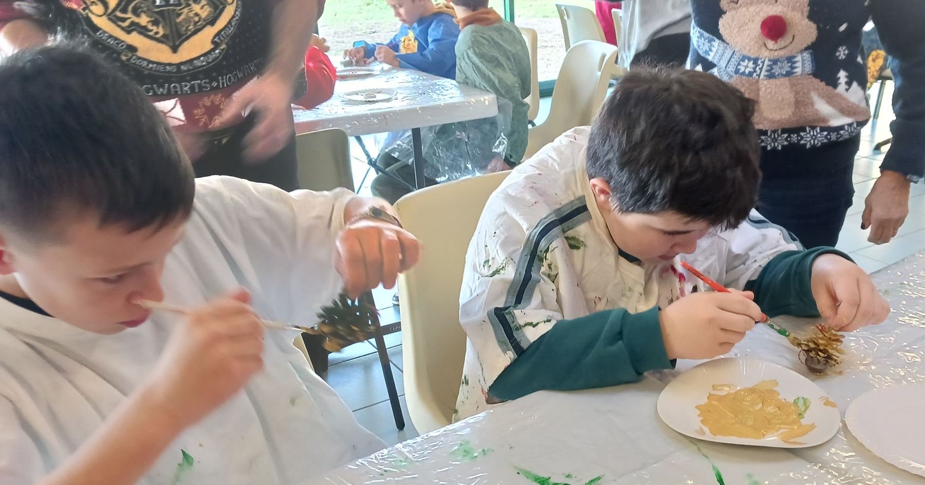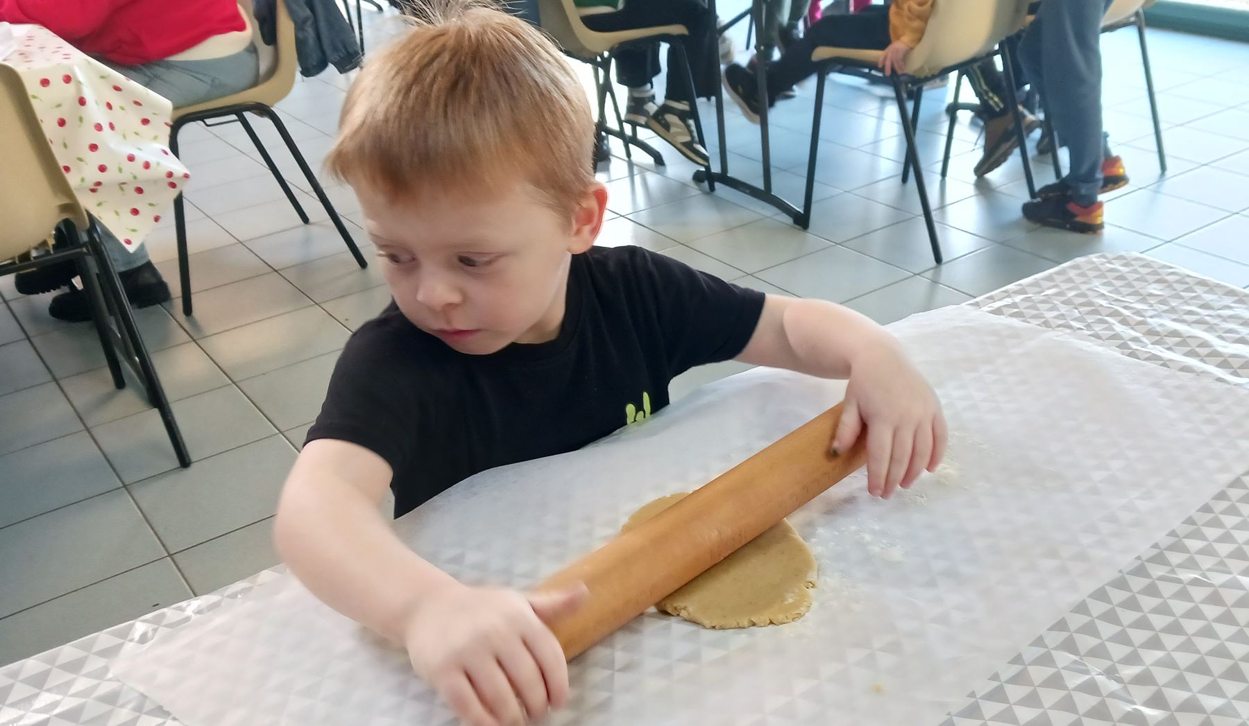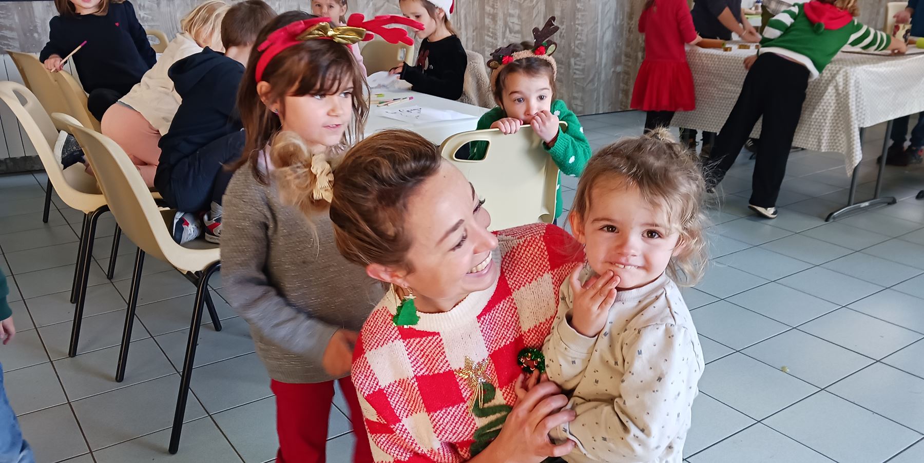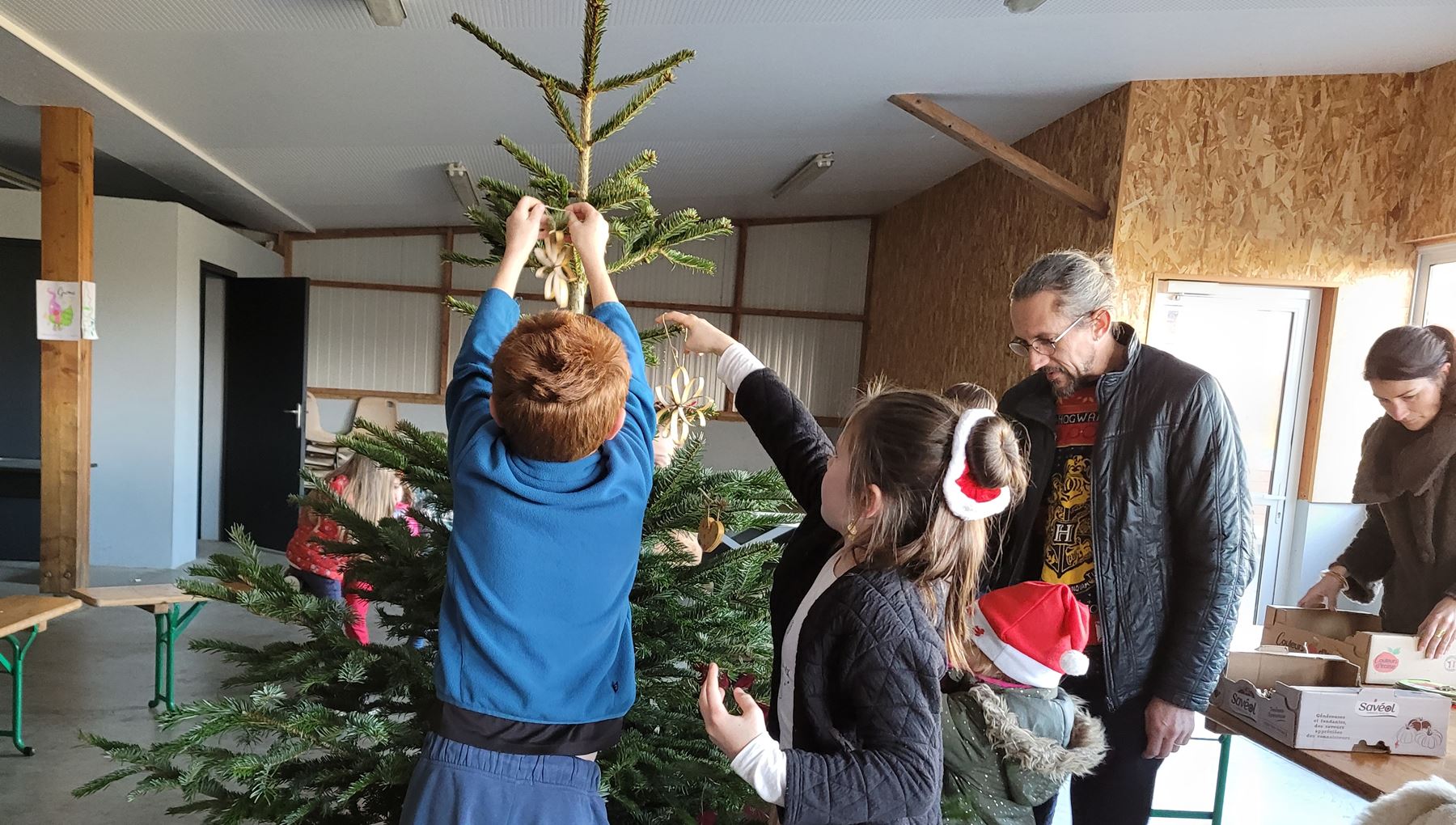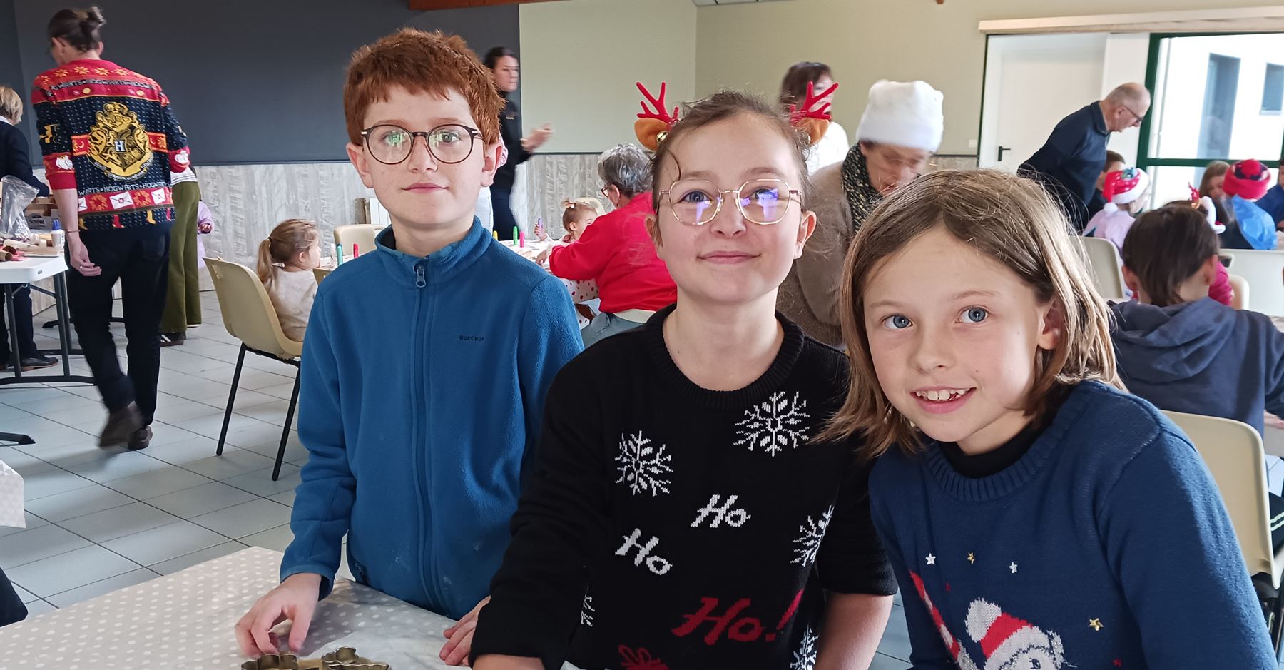 Rendez-vous pour les enfants de l'école à la salle polyvalente ce matin là, à 10h30 pour des ateliers cuisine, peinture, découpage ... Mme BAHEZRE propose des ateliers gâteaux et bricolage .... Mme ZAUGG prépare des boules en tissus avec le prénom de chaque enfant brodé. Quelques adultes sont venus apporter leur soutien. |