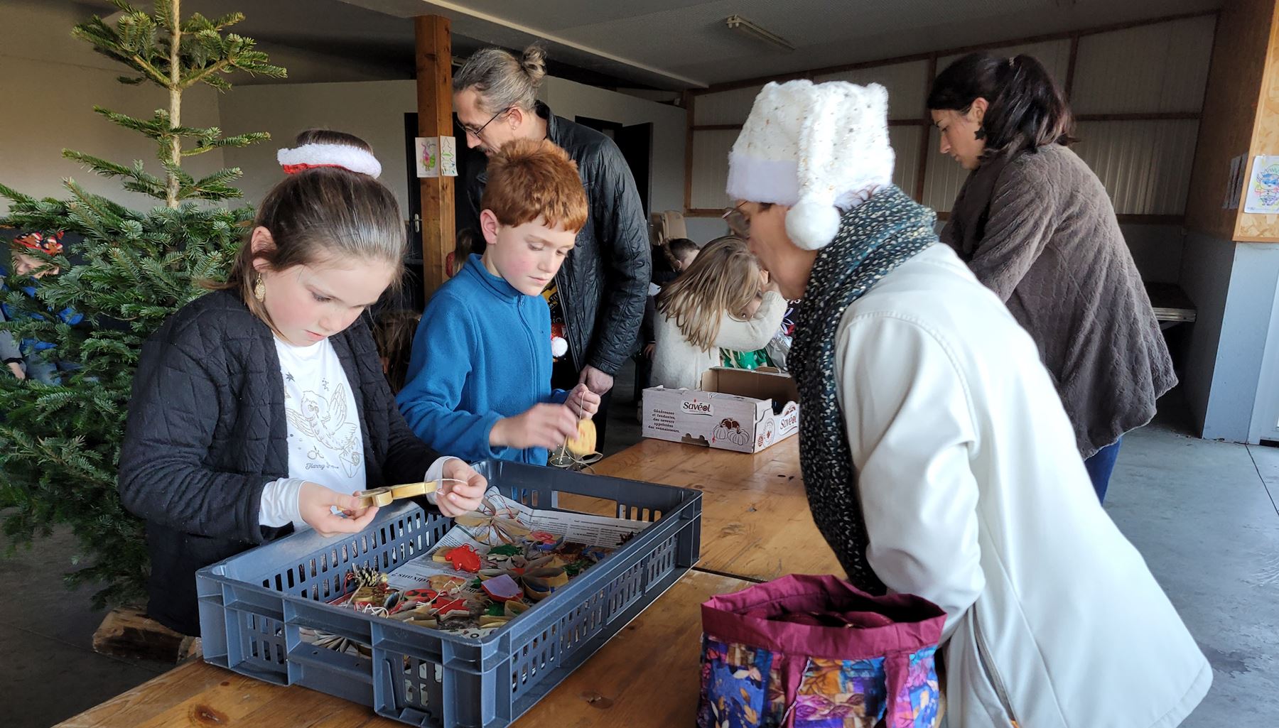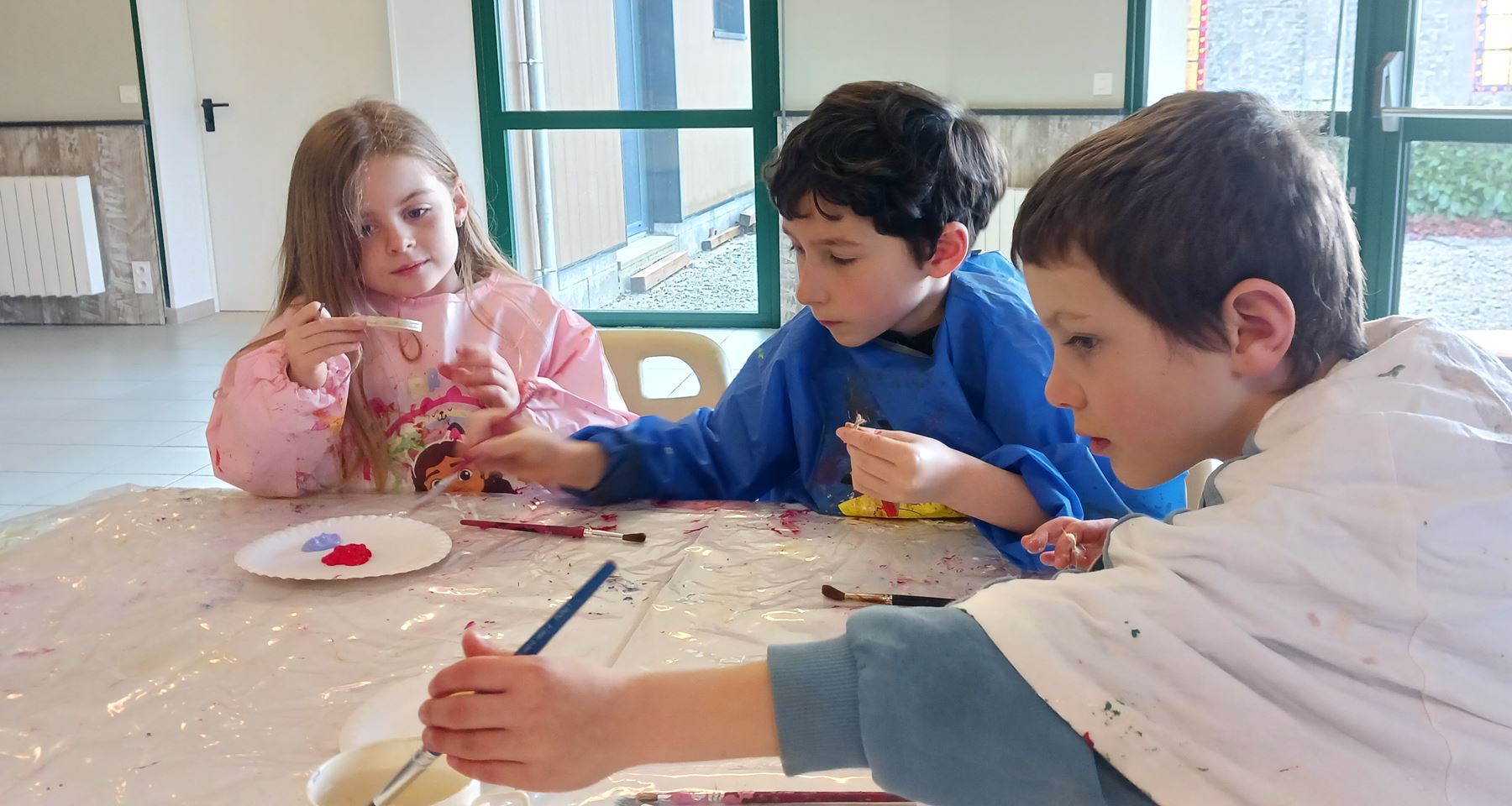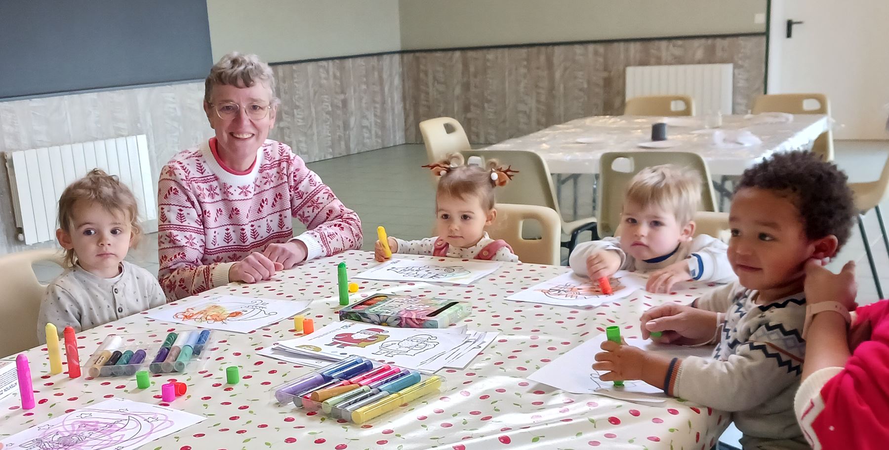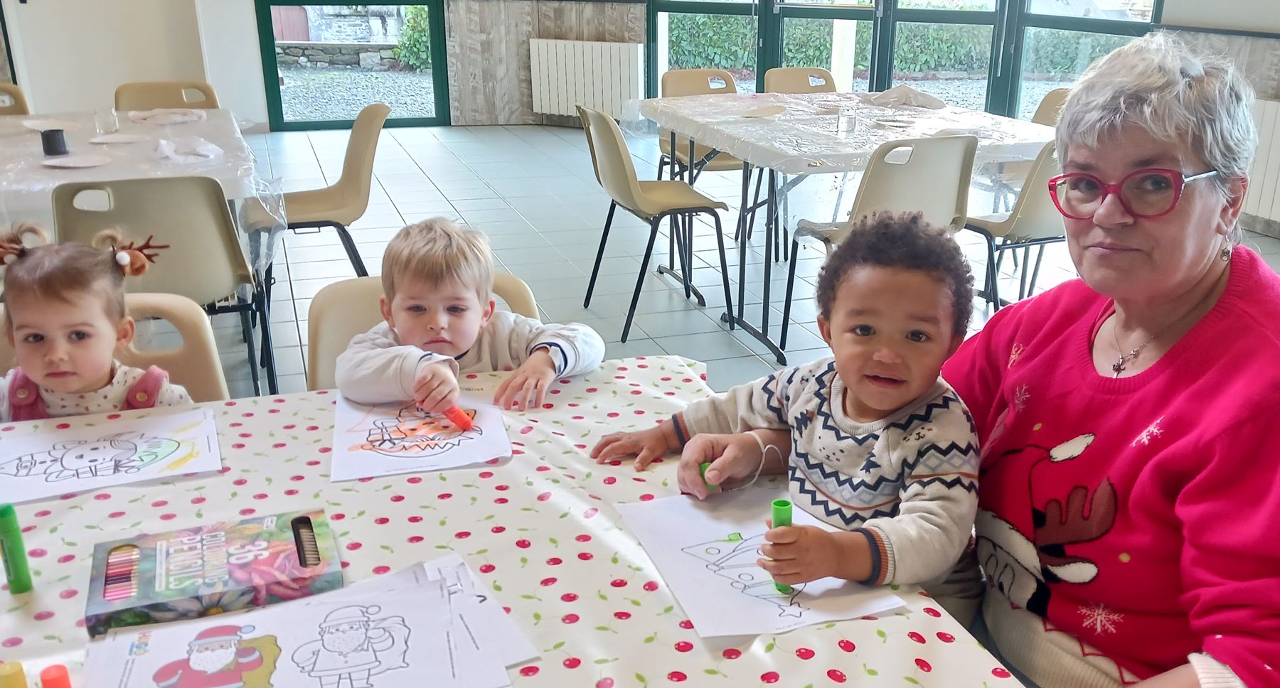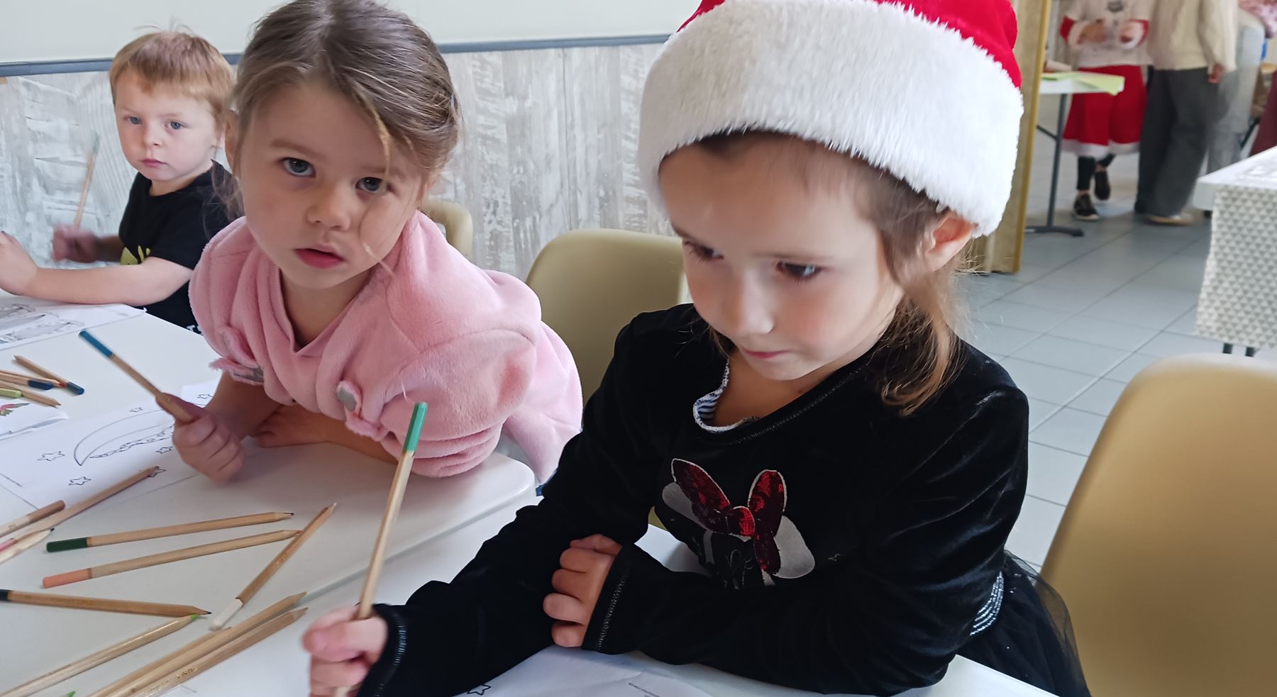 Rendez-vous pour les enfants de l'école à la salle polyvalente ce matin là, à 10h30 pour des ateliers cuisine, peinture, découpage ... Mme BAHEZRE propose des ateliers gâteaux et bricolage .... Mme ZAUGG prépare des boules en tissus avec le prénom de chaque enfant brodé. Quelques adultes sont venus apporter leur soutien. |