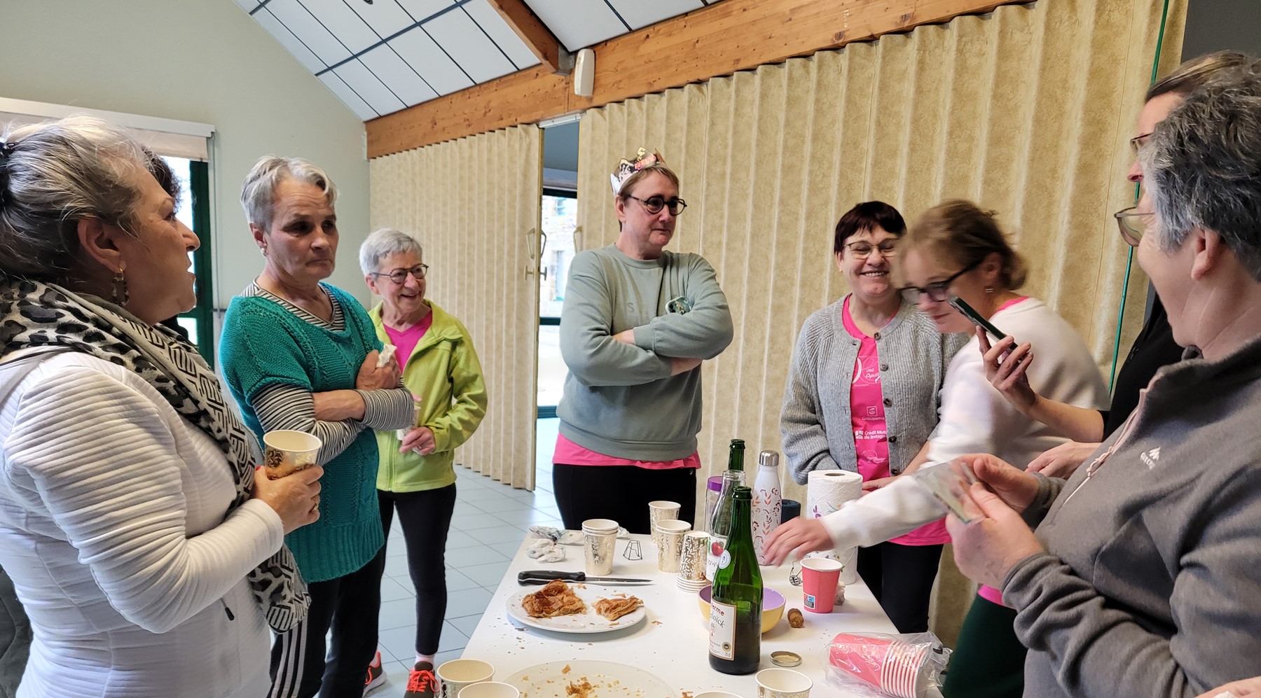 "Les cours de gym ont repris. Il manquait la petite pause apéro. C'est fait à l'occasion de l'anniversaire d'Anne Marie - ce qui explique la présence inhabituelle de l'homme sur la photo ! |