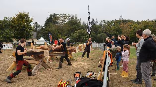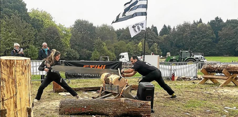 | Les démonstrations de bûcheronnage sportif, présentées par les Beurre salé de Lopérec, dans le Finistère, séduisent petits et grands. |