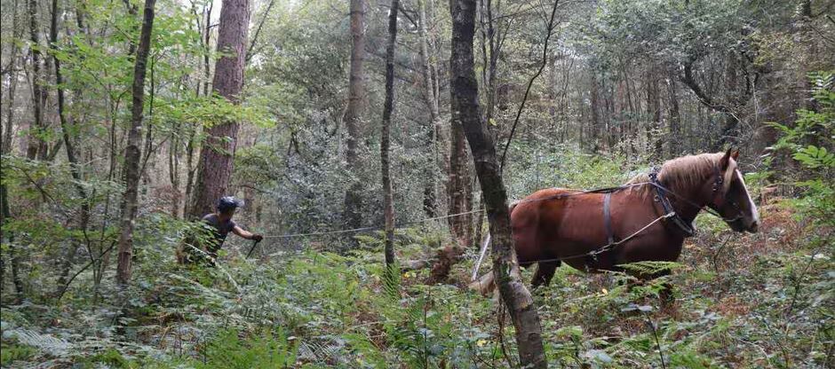 | Les techniques du débardage à cheval ont été présentées. Elles sont utilisées dans des endroits difficiles d'accès |