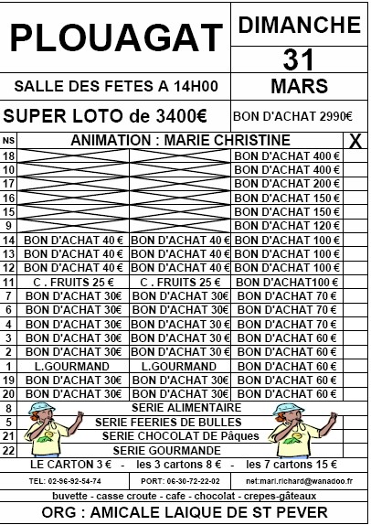 Le dimanche 31 mars à la salle communale de Plouagat, |
